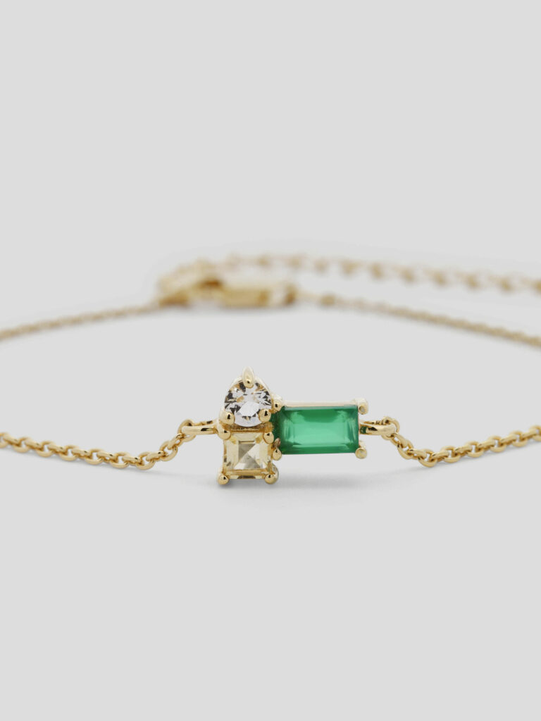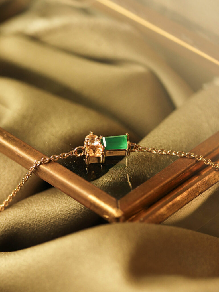The bracelet is adorned with delicate, high-quality gemstones that add a touch of luxury and sparkle. Whether worn alone or paired with other pieces, Evelyn’s Exquisite Link Bracelet is versatile enough to complement both everyday outfits and special occasions. The secure clasp ensures it stays comfortably in place, making it perfect for all-day wear.